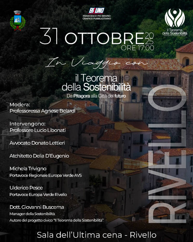 In data 31/10/2025 nella suggestiva Sala dell’Ultima Cena di Rivello, il Teorema della Sostenibilità ha trovato ascolto, domande e relazione.